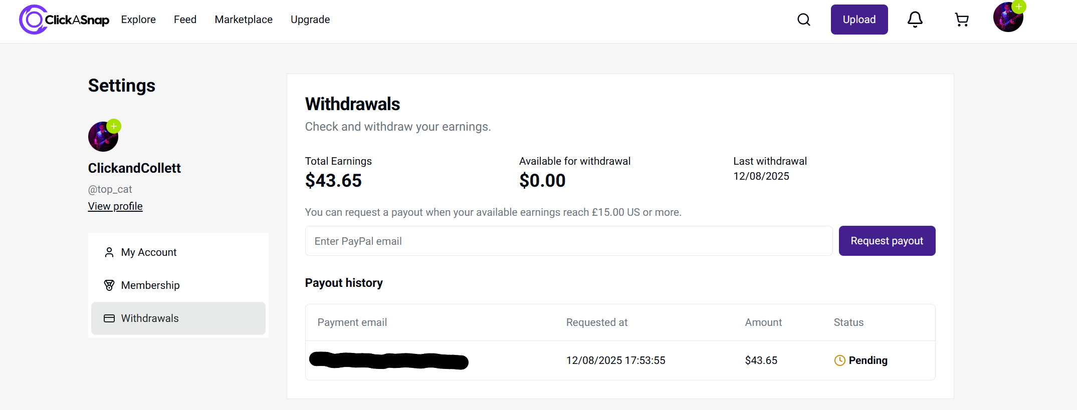 Iβve not been using Clickasnap for a while, as my job has gotten in the way. A lot has changed but I am going to make another attempt at using it and testing its true earning potential without using dodgy tactics! But before this can happen, I want to draw out my earnings and make sure I actually get paid successfully like the last time.